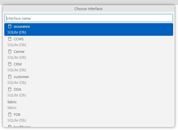 Alternatively, you can use the Command Pallet by choosing there the Open Query builder… command. Then, list of interfaces will appear, where you can choose one of them (also with the option to type and search) to open the Query Builder window for this interface.