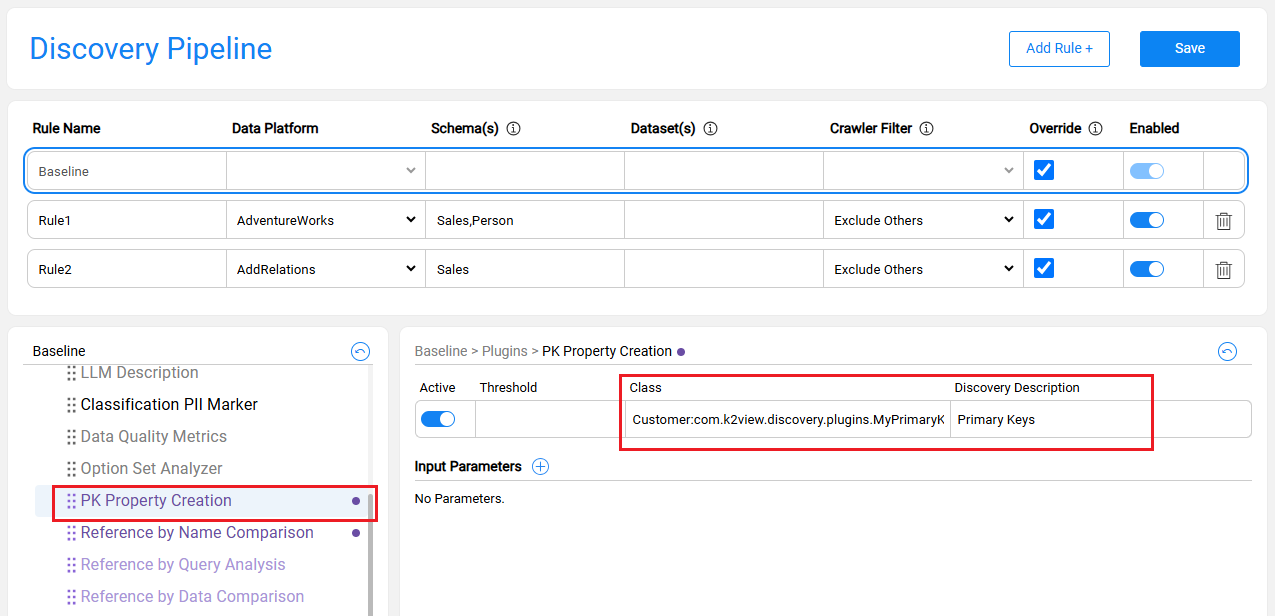 Customer:com.k2view.discovery.plugins.MyPrimaryKeyPlugin.Enter a Discovery Description. This text will appear in the Discovery Monitor.