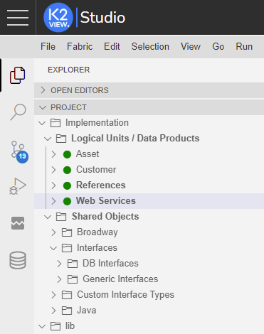 Logical Units / Data Products - a collection of all defined Logical Units / Data Products in the project. Of this collection, there are 2 system LUs - References and Web Services - that exist by default in any project: