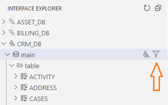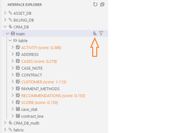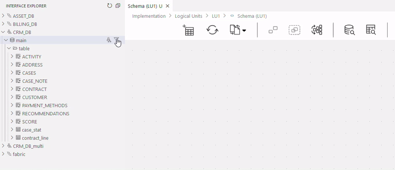 Interface Explorer View lets you explore the project's data source (the DB interfaces), as well as Fabric, and carry out actions using the Studio editors.