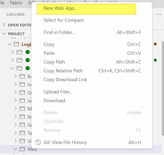 In the Project Tree, select the LU in which you intend to create the web application, and navigate to the Web folder.
