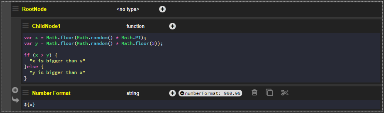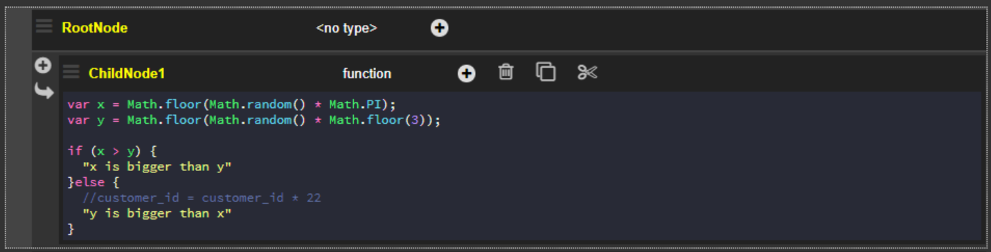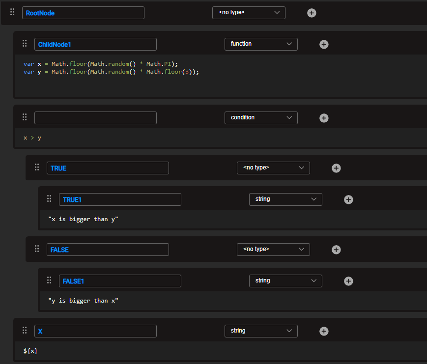 The condition defined in this file triggers either the TRUE node or the FALSE node, depending on the randomly generated values of x and y.