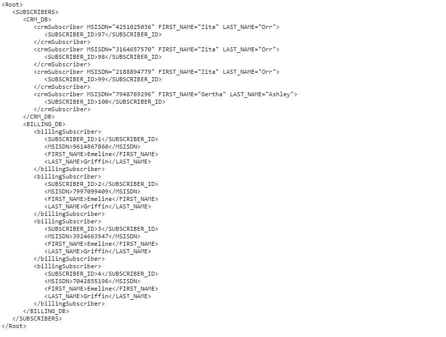 <Root><SUBSCRIBERS><CRM_DB><SUBSCRIBER_ID>97</SUBSCRIBER_ID></CRM_DB><CRM_DB><SUBSCRIBER_ID>98</SUBSCRIBER_ID></CRM_DB><CRM_DB><SUBSCRIBER_ID>99</SUBSCRIBER_ID></CRM_DB><CRM_DB><SUBSCRIBER_ID>100</SUBSCRIBER_ID></CRM_DB><CRM_DB><SUBSCRIBER_ID>101</SUBSCRIBER_ID></CRM_DB><CRM_DB><SUBSCRIBER_ID>102</SUBSCRIBER_ID></CRM_DB><CRM_DB><SUBSCRIBER_ID>103</SUBSCRIBER_ID></CRM_DB><CRM_DB><SUBSCRIBER_ID>104</SUBSCRIBER_ID></CRM_DB><CRM_DB><SUBSCRIBER_ID>105</SUBSCRIBER_ID></CRM_DB><CRM_DB><SUBSCRIBER_ID>106</SUBSCRIBER_ID></CRM_DB></SUBSCRIBERS></Root>