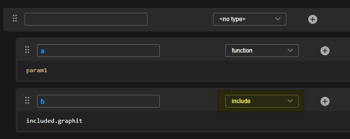 Accordingly, if we call to the parent graphit file similar to this /api/grInclude?param1=hello¶m2=wrold yields this output: