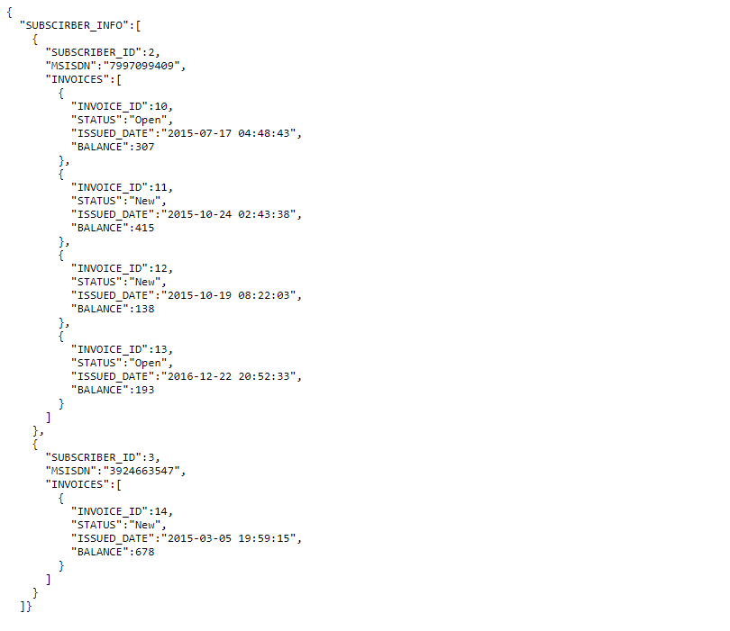 The response has been reorganized using SUBSCRIBER_ID as the key.