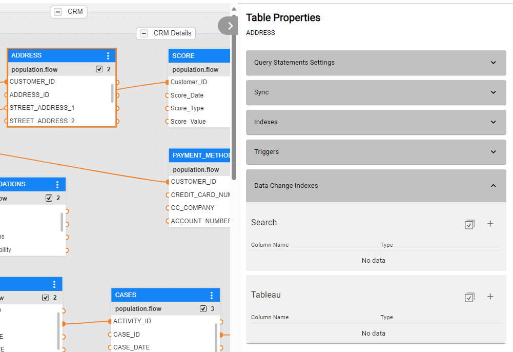 Open the CDC section of the Table Properties pane for adding columns. The Table Properties pane can be shown either in the Schema window, when you select a table and open the properties pane, or when opening a table through the Project Tree and then open its properties pane.