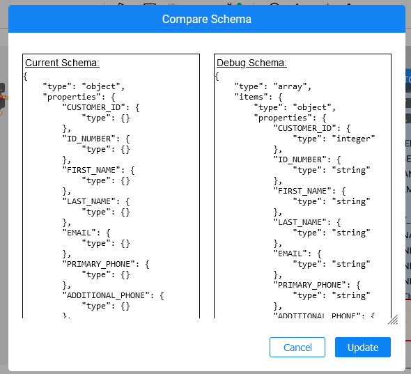 2. Click the parameter's port (red) to open the Compare Schema window.