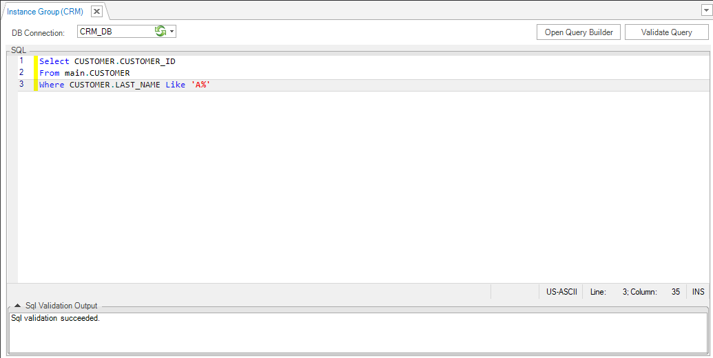 Following the new instance group creation, write a valid SQL query to select the instances to be included in the Instance Group. The query can be written manually or by using the DB Explorer to build it.
