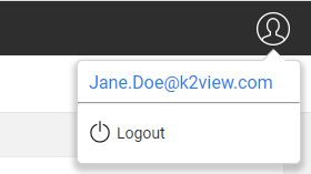 To view the logout action and the connected username, the user should click on the avatar icon.