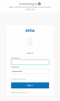 User is redirected to the configured SAML IDP and, from the login page, enters their credentials. For example, at Okta IDP: