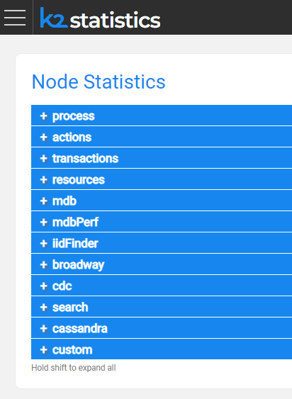 The following statistics sections can be viewed:
