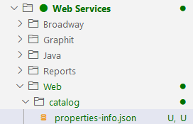 "editable": true — the property is editable via the Edit Catalog capabililty."deletable": true — the property can be deleted via the Edit Catalog capabililty."searchable": true — the Catalog can be searched using this property in the Advanced Search screen."filterable": true — the Catalog can be filtered using the Catalog Filter screen."values":[] specifies the list of valid values for a property. For some properties, this list is combined with programmatically retrieved values (e.g., classification)."allow_custom_values": true defines the ability to populate a custom value for a property that includes a drop-down list. "hidden": true — the property is hidden from the Catalog's Properties tab.The properties-info.json file is located in the fabric/staticWeb/catalog folder.