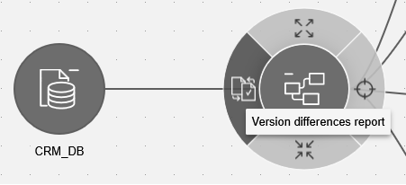 The window can be accessed by clicking the 'Version differences report' icon, which is available on the schema node and appears only in version comparison mode.